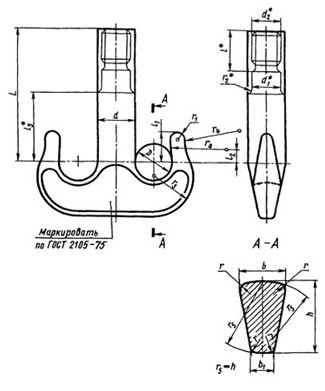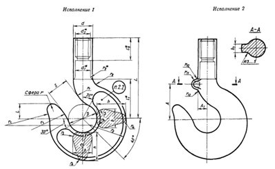 They are used to equip lifting machines and mechanisms. They are manufactured by hot stamping (GS) and free forging (SC) in accordance with GOST 6627-74. It is possible to supply hooks, both in the form of blanks and with pre-machining. Hook type A differs from hook type B in size L.